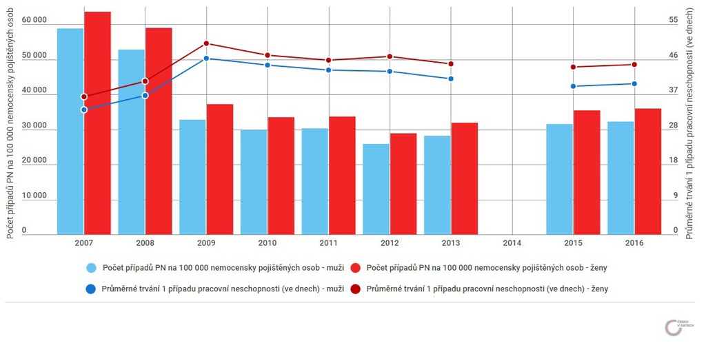Počty případů pracovní neschopnosti jsou ale v posledních letech poměrně stabilní.