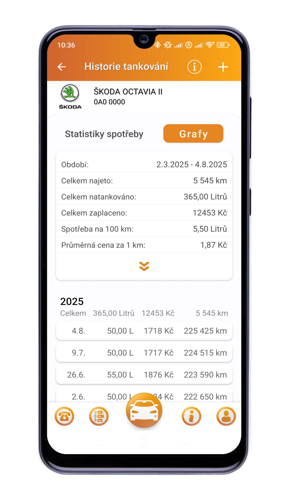 Pokud si pravidelně zapisujete tankování, nově máte k dispozici grafy, které přehledně zobrazují: