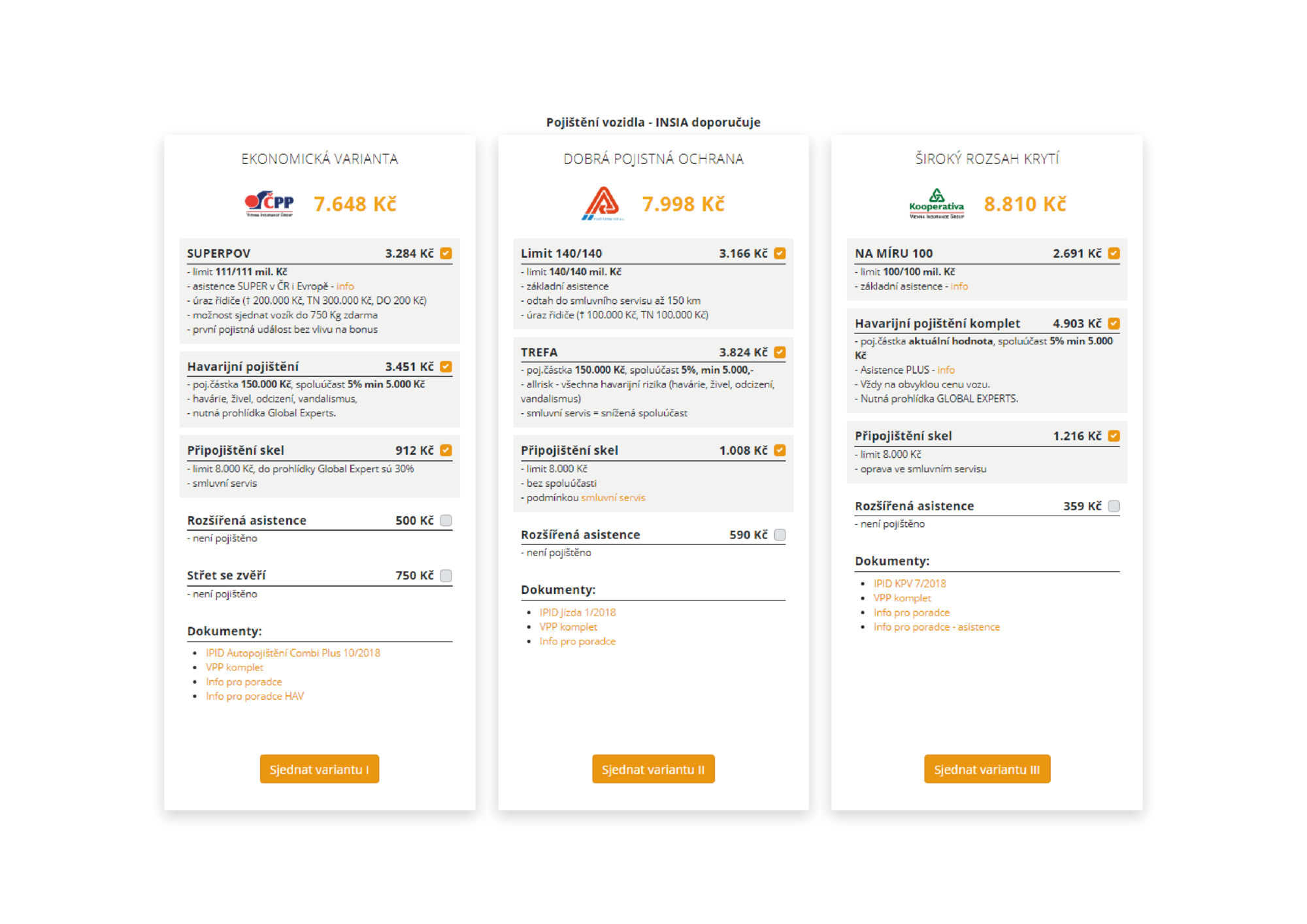 - Inteligentní srovnání nabídek – IGNÁC neřadí nabídky pouze dle ceny pojištění, ale sám vytváří komplexní nabídku a doporučí poradci nejvhodnější variantu pojištění.