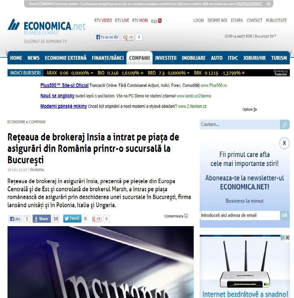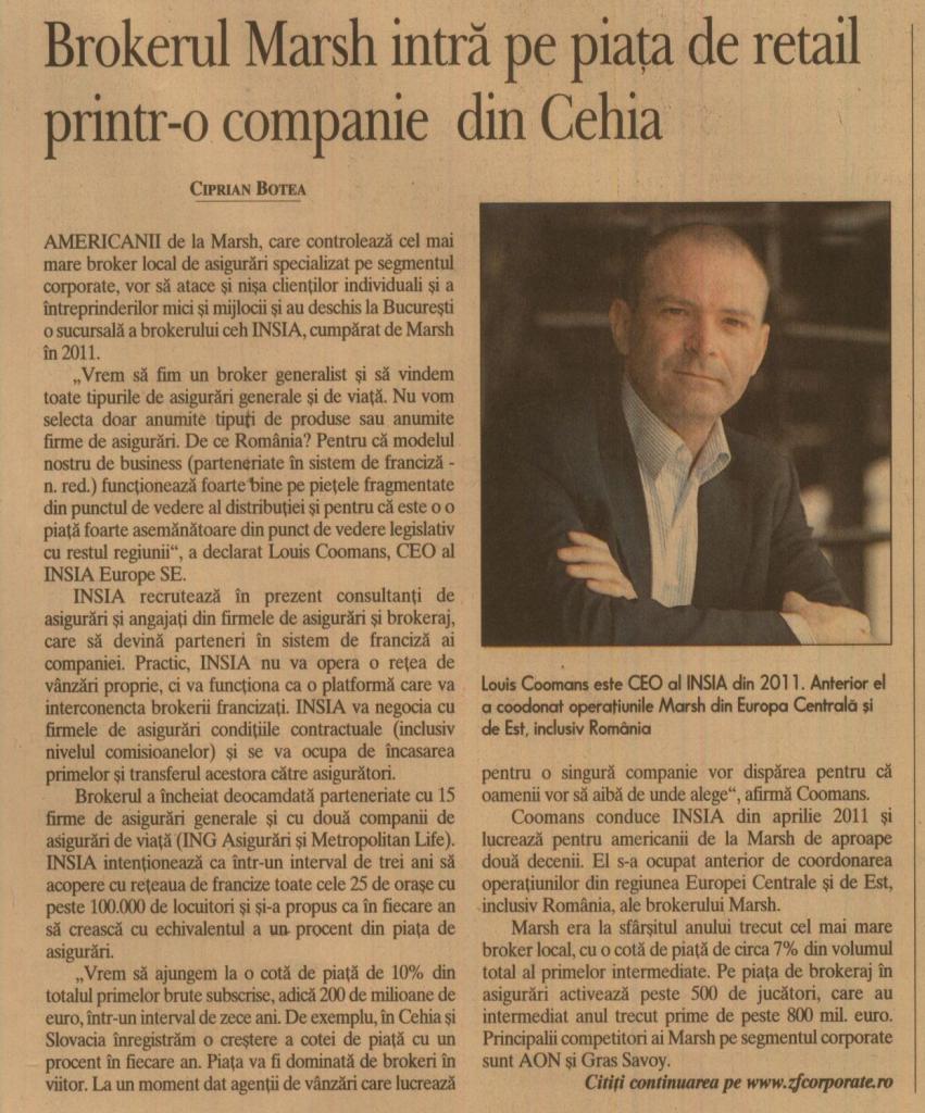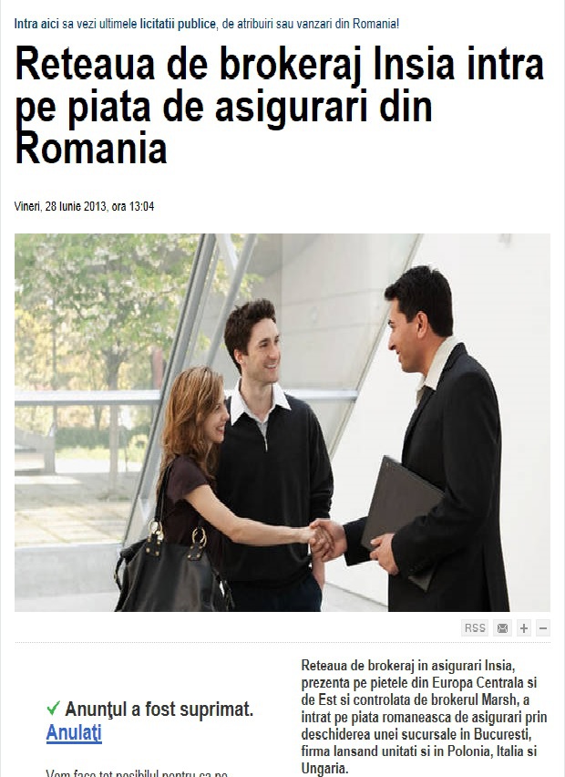 Dne 27. 6. 2013 se v Bukurešti uskutečnila tisková konference, na které byla oficiálně představena síť INSIA. INSIA spolu se strategickým partnerem MARSH otevřela v Rumunsku pobočku v březnu letošního roku.
