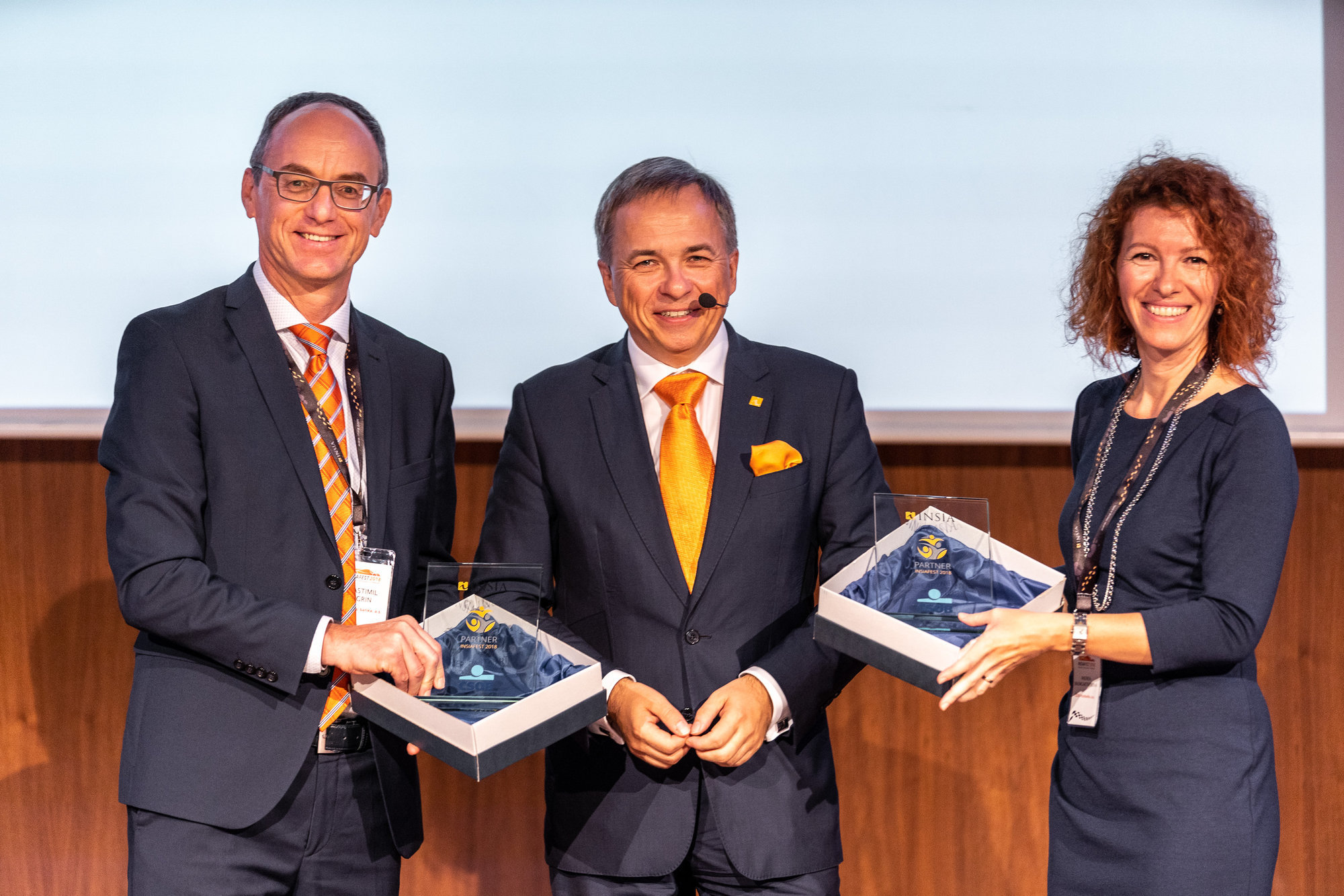 V rámci zahájení konference vystoupili i zástupci partnera konference, finanční skupiny ČSOB z České republiky a Slovenska, kteří shrnuli úspěšnou spolupráci se společností INSIA a převzali si plakety partnera konference.