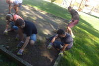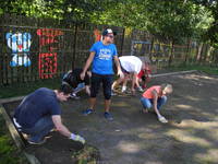 Pro zdejší děti jsme uspořádali sportovní odpoledne se zábavnými soutěžemi, kterých se s radostí a nadšením zúčastnily. Zároveň jsme se trošku protáhli při úklidu petangových hřišť pro děti a úpravy chodníků kolem domova. Zakončením celého dne bylo podávání polního guláše, který jsme společnými silami uvařili.