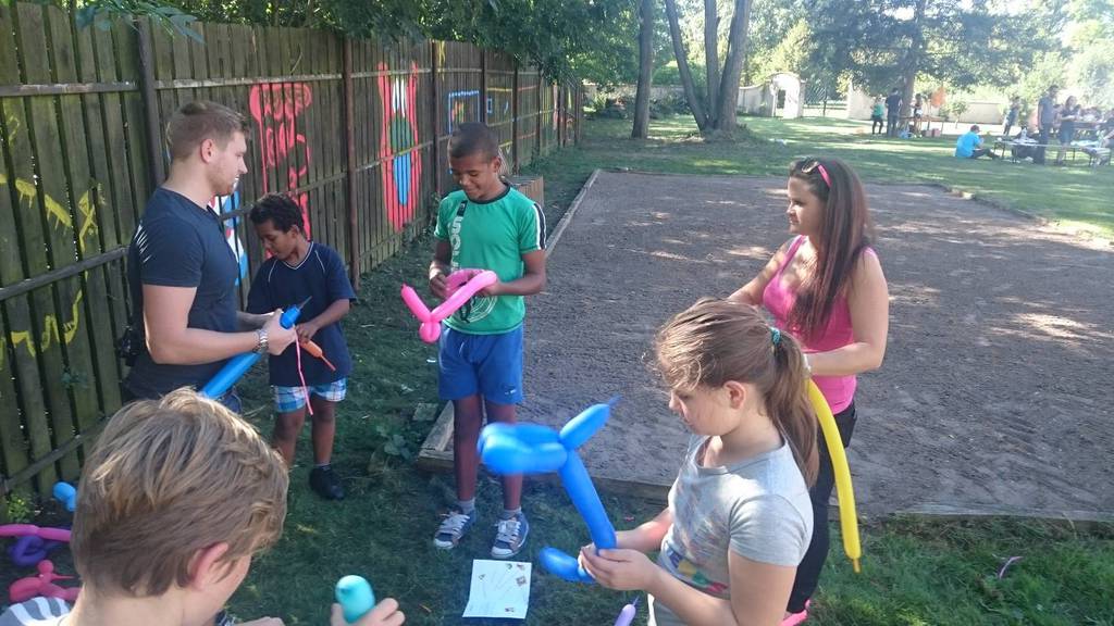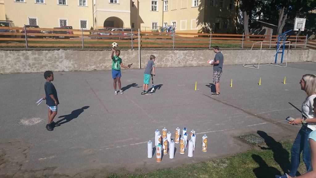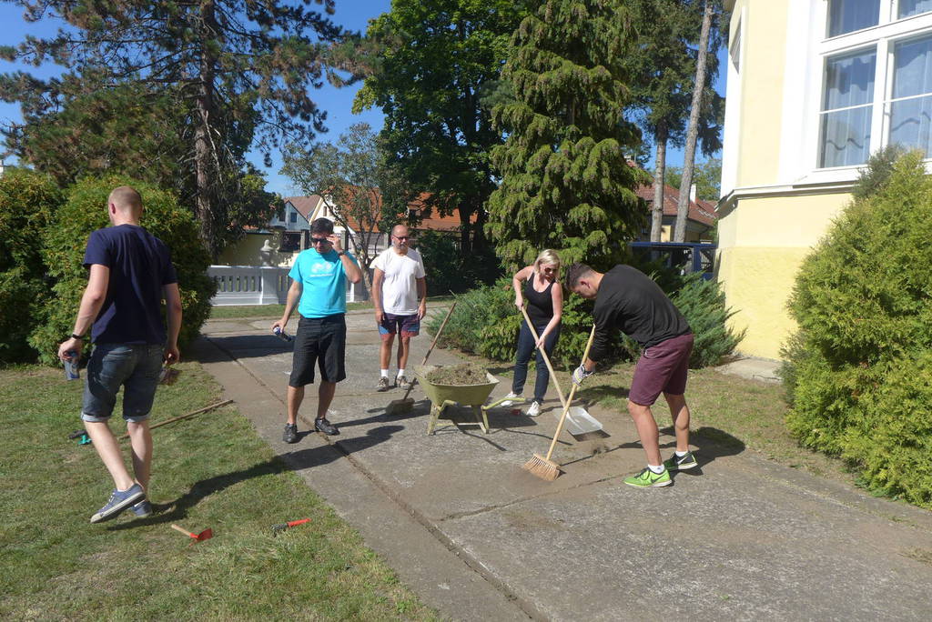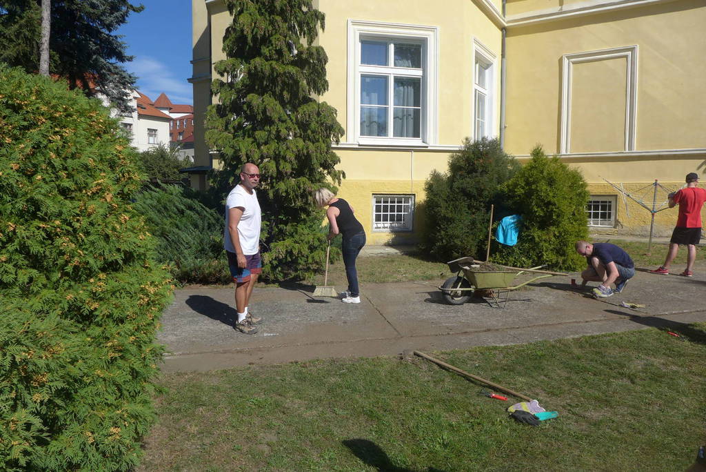 Pro zdejší děti jsme uspořádali sportovní odpoledne se zábavnými soutěžemi, kterých se s radostí a nadšením zúčastnily. Zároveň jsme se trošku protáhli při úklidu petangových hřišť pro děti a úpravy chodníků kolem domova. Zakončením celého dne bylo podávání polního guláše, který jsme společnými silami uvařili.