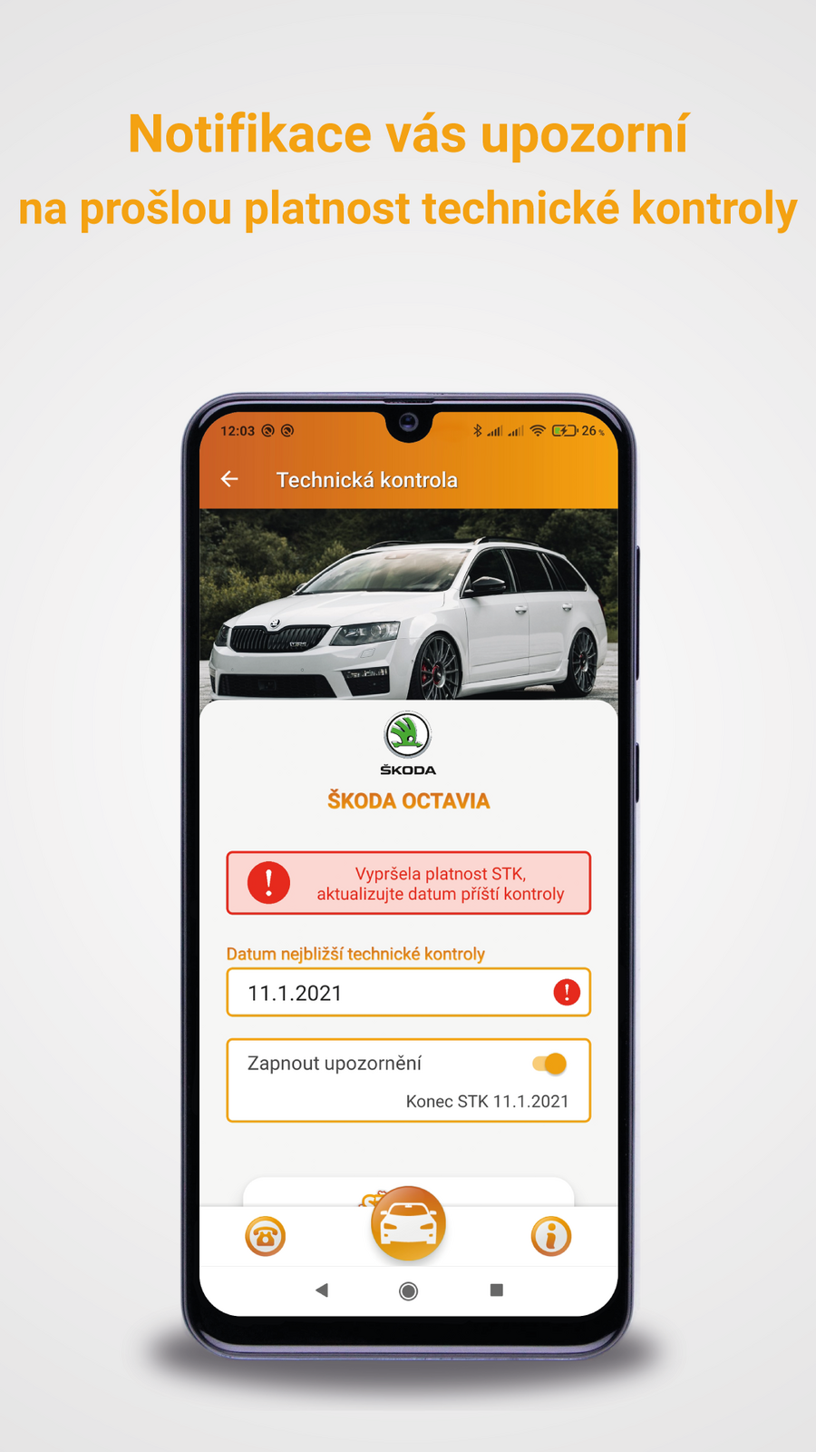 Příjemnou funkcí jsou volitelné notifikace. Ty vás upozorní na blížící se termín technické kontroly, připomenou výročí pojistných smluv a pohlídají končící platnost zelené karty a elektronické dálniční známky.