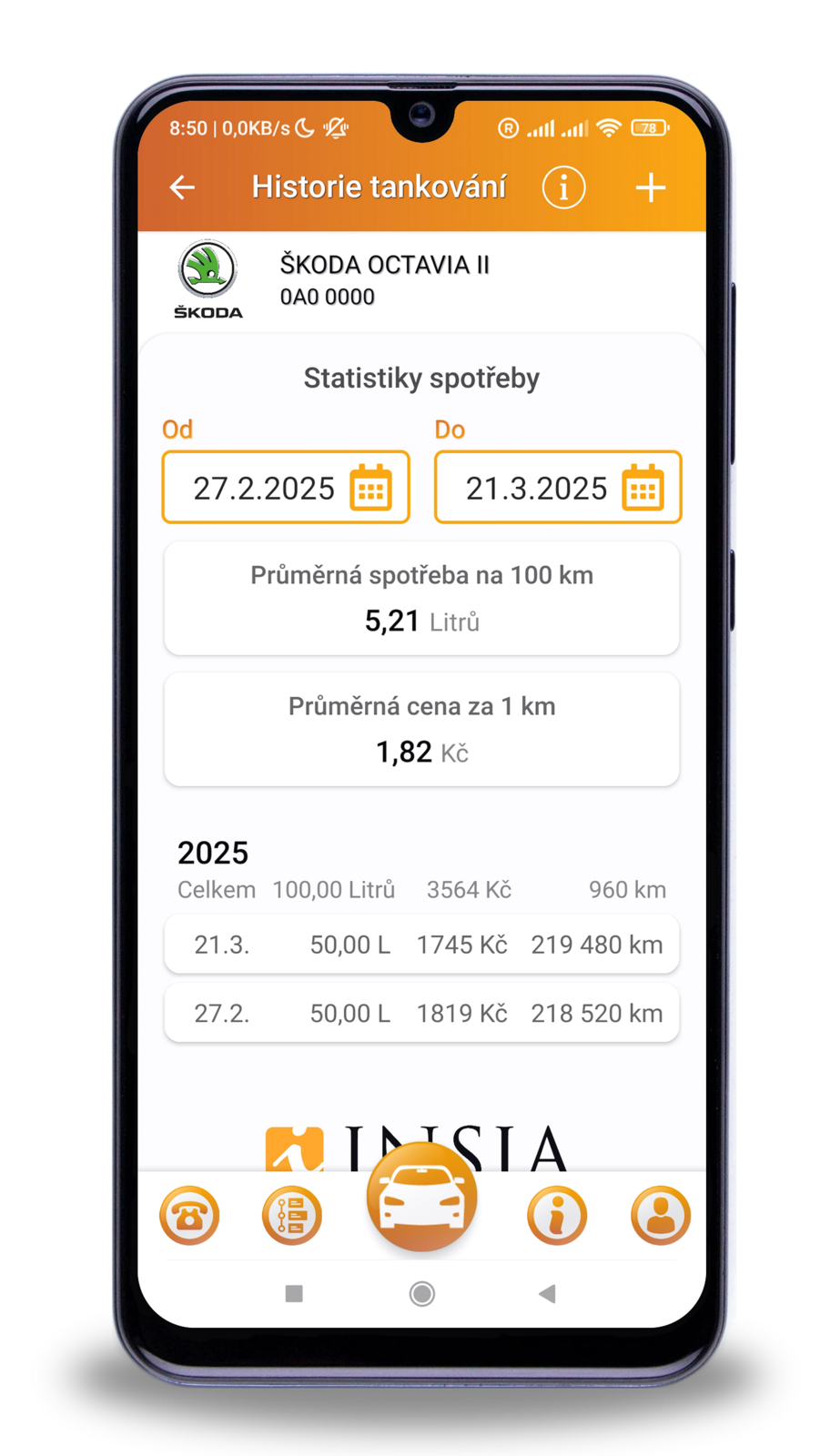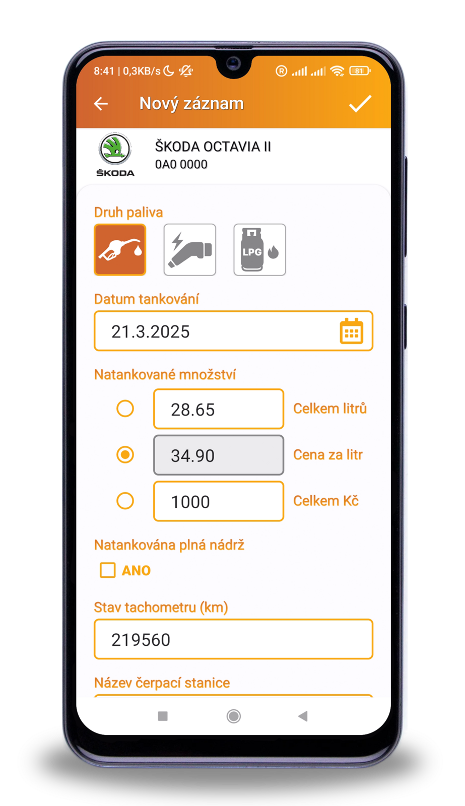 Pokud tankujete plnou nádrž nebo pravidelně zadáváte údaje, aplikace vám navíc spočítá: