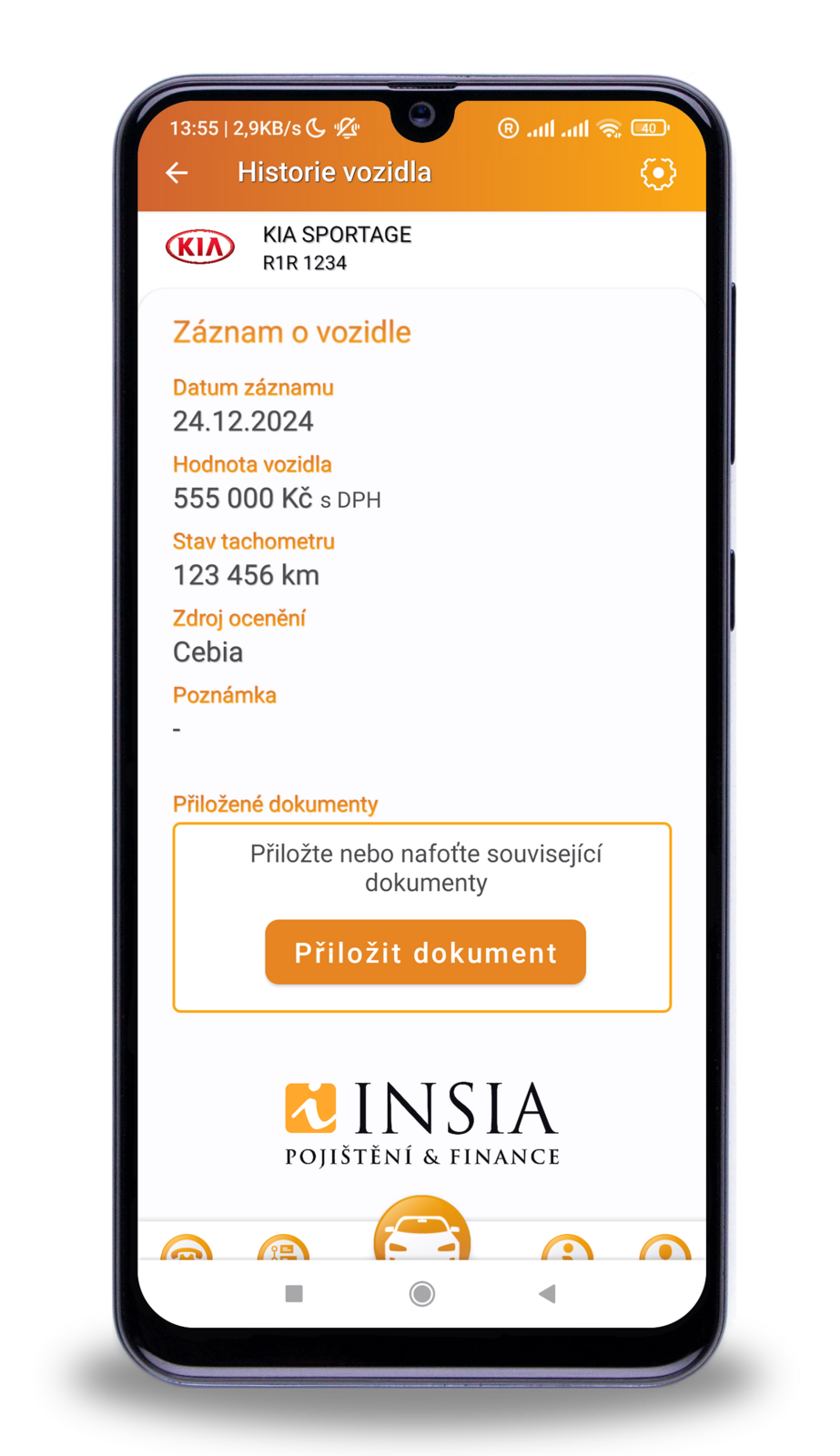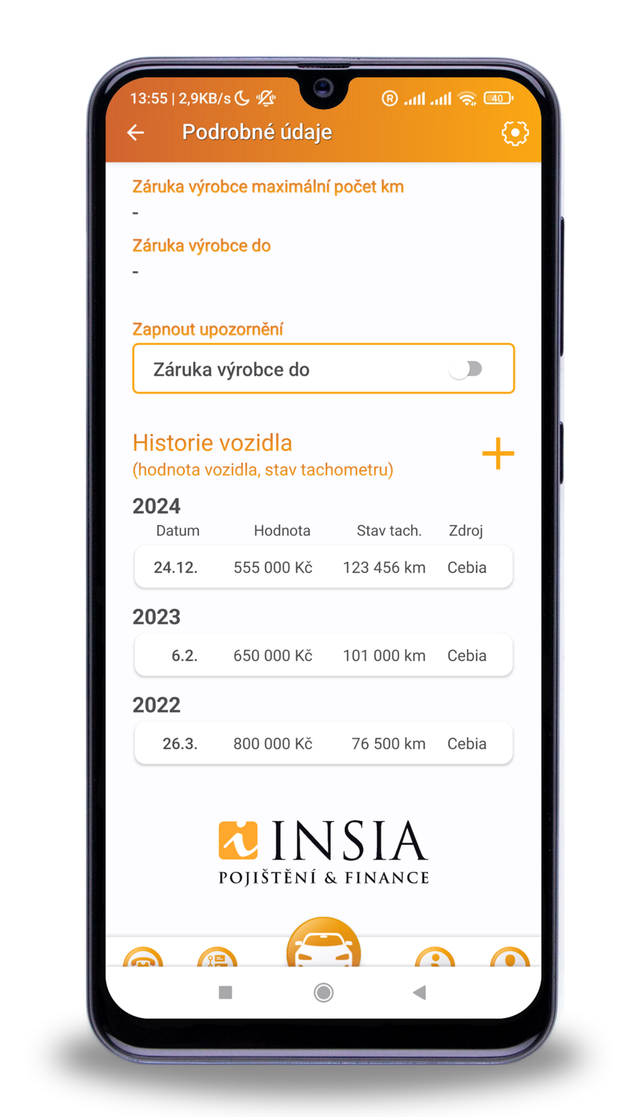 Pokud máte havarijní pojištění sjednané u INSIA, hodnota vozidla se vám do aplikace propíše přímo ze smlouvy. Ostatní uživatelé si mohou částku zadat ručně.